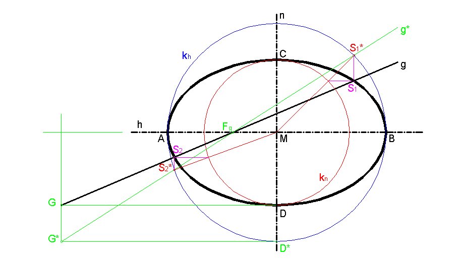 Es sollen die Schnittpunkte von g mit der Ellipse konstruiert werden.
