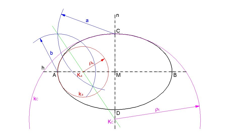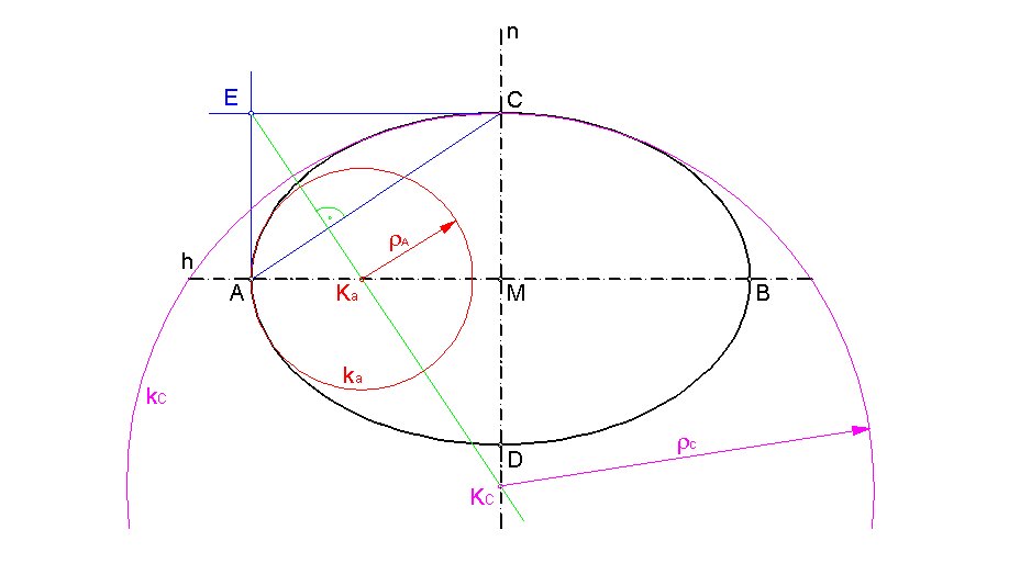 Es sollen nun die Scheitelkrümmungskreise im Hauptscheitel A und im Nebenscheitel C konstruiert werden.