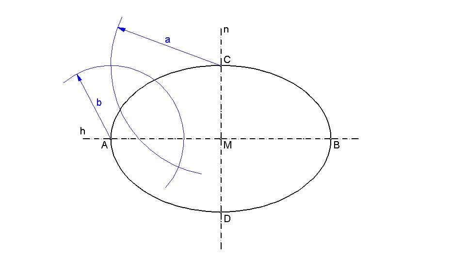 Man zeichnet um die Scheitel A und C je einen Kreis mit Radius b bzw. a.