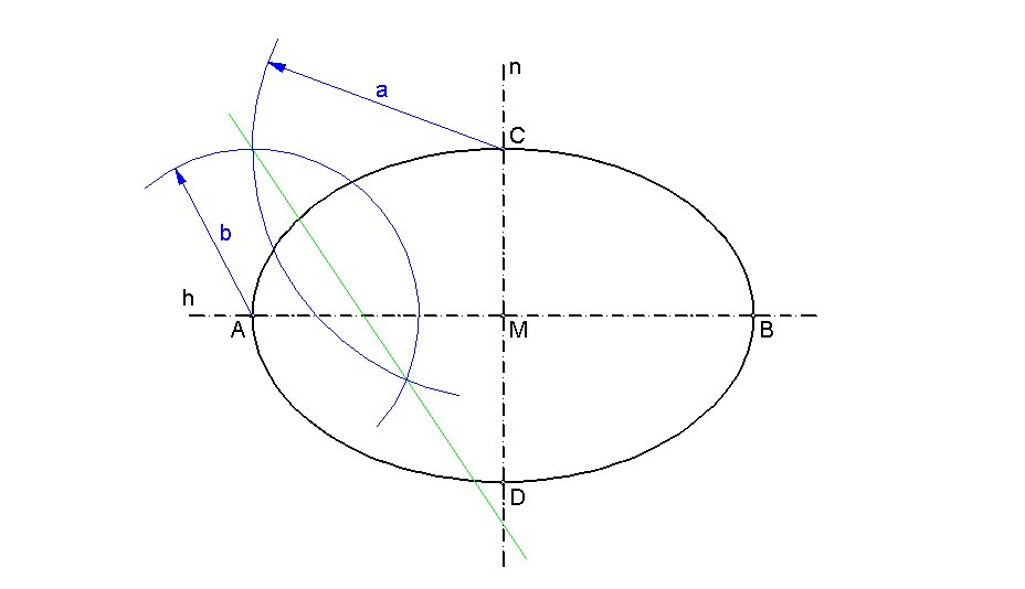 - Man zeichnet um die Scheitel A und C je einen Kreis