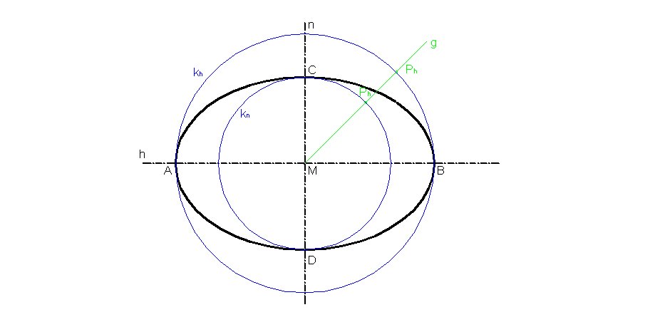 - Man zeichnet Hauptscheitelkreis kh und Nebenscheitelkreis kn.