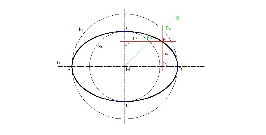 - Man zeichnet Hauptscheitelkreis kh und Nebenscheitelkreis kn.