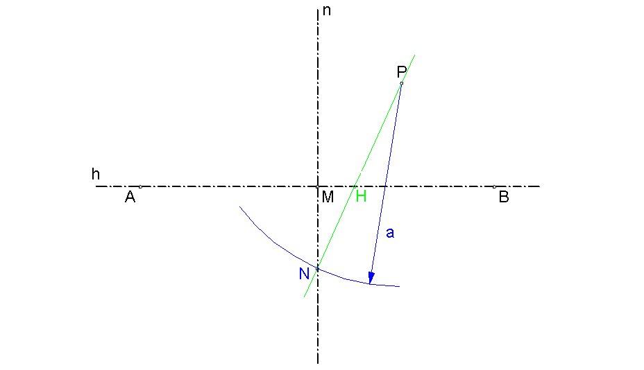 Man zeichnet einen Kreis um P mit Radius a und schneidet diesen mit n, der Schnittpunkt heißt N.