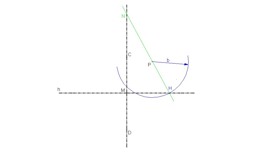 - Man zeichnet die Gerade PH und schneidet diese mit n, der Schnittpunkt heißt
