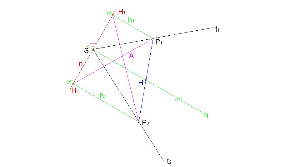 Dann zeichnet man die Parallelen h1 und h2 durch P1
