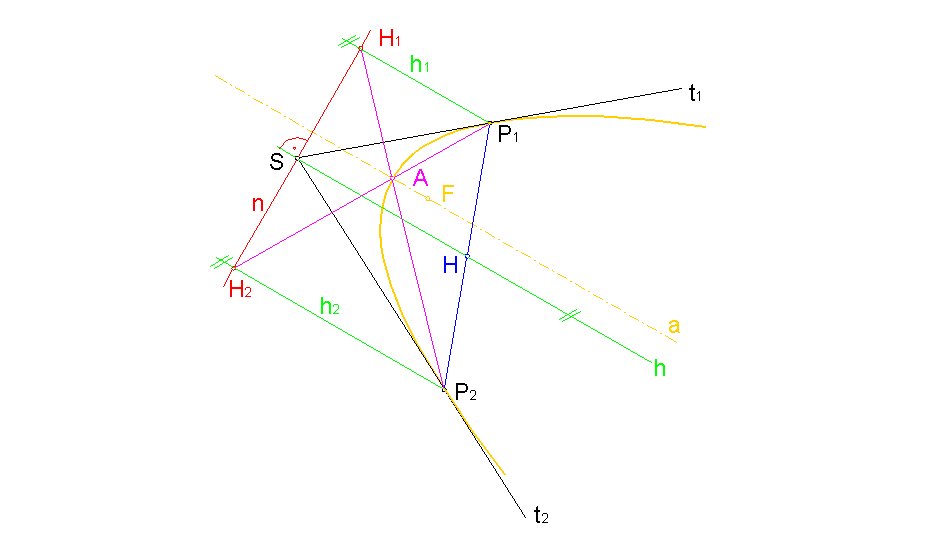 H und den Schnittpunkt S der beiden Tangenten t1 und t2.