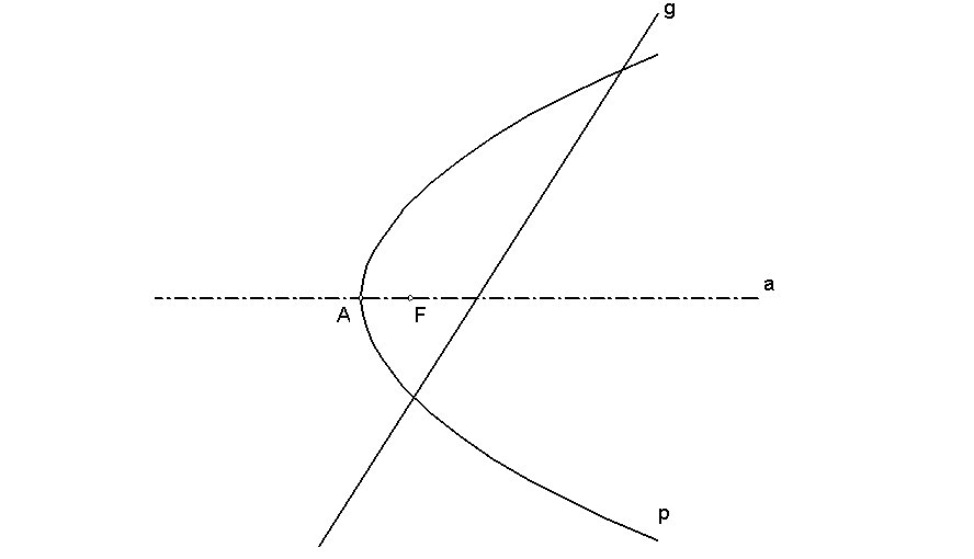 Es seien eine Gerade g und eine Parabel durch Scheitel A und Brennpunkt F gegeben.