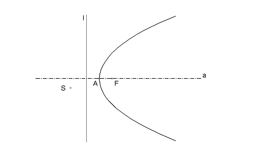 Gegeben seien ein Punkt S und eine Parabel durch Scheitel A und Brennpunkt F.