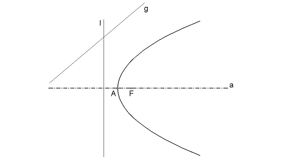 Gegeben seien eine Gerade g und eine Parabel durch Scheitel A und Brennpunkt F.