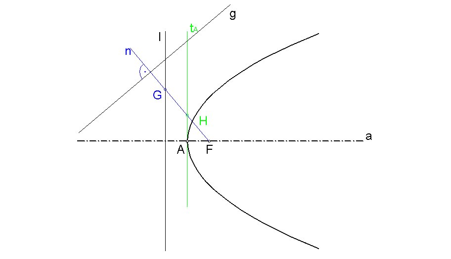 - Man zeichnet die Normale n zu g durch den Brennpunkt