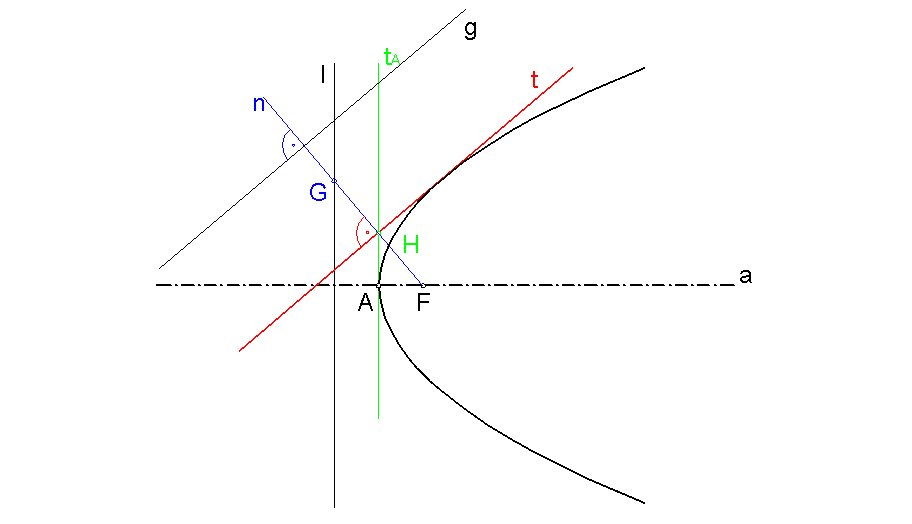 - Man zeichnet die Normale n zu g durch den Brennpunkt