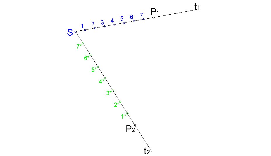 gleichlange Teilstrecken und nummeriert die Teilungspunkte bei P2
