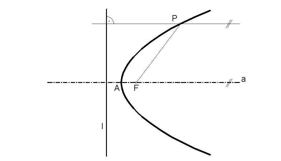 zeichnet die Normale zu l (Parallele zu a) durch den Punkt P, sowie die Brennstrecke PF.